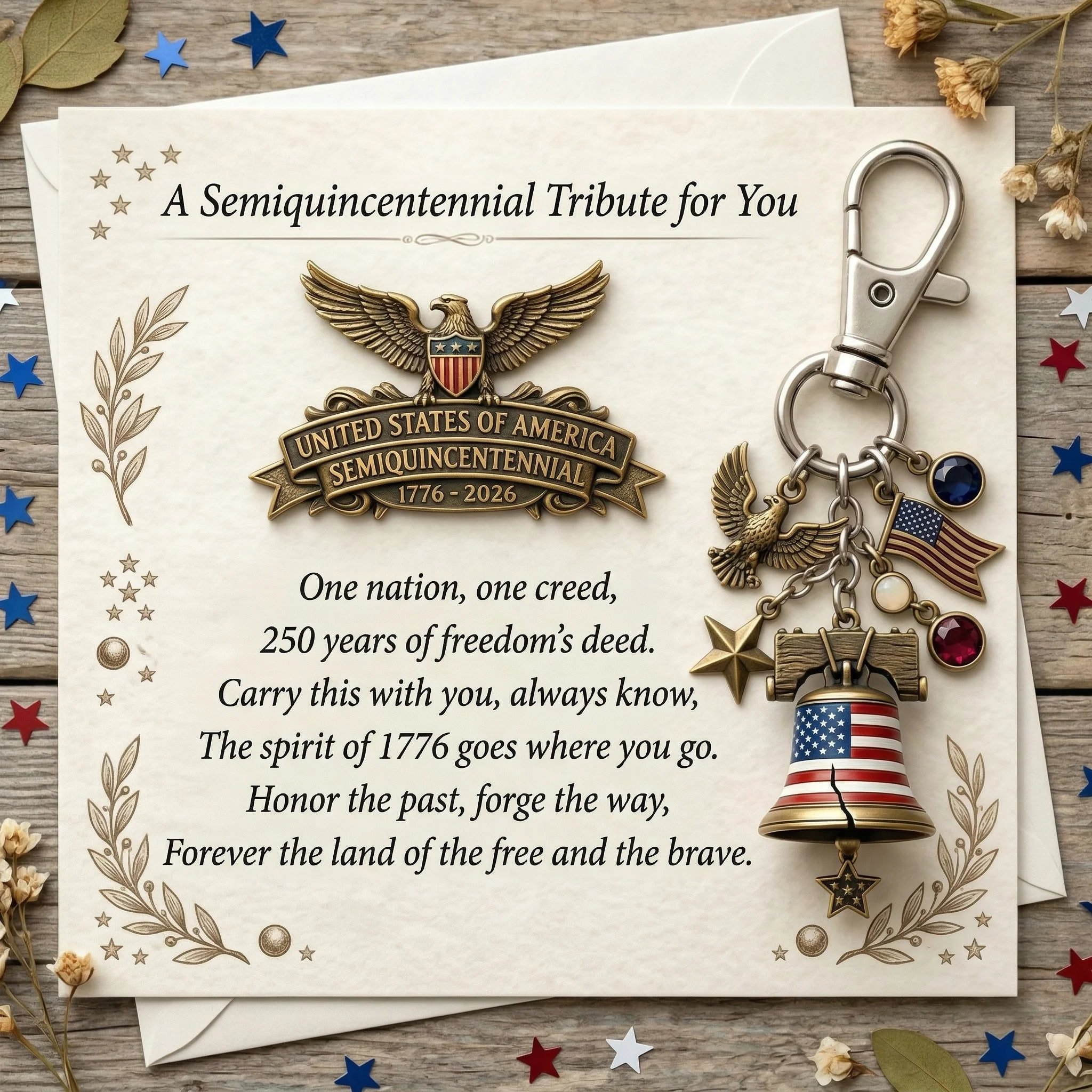 🇺🇸 Semiquincentennial Tribute Set: Card + Lapel Pin + Keychain
