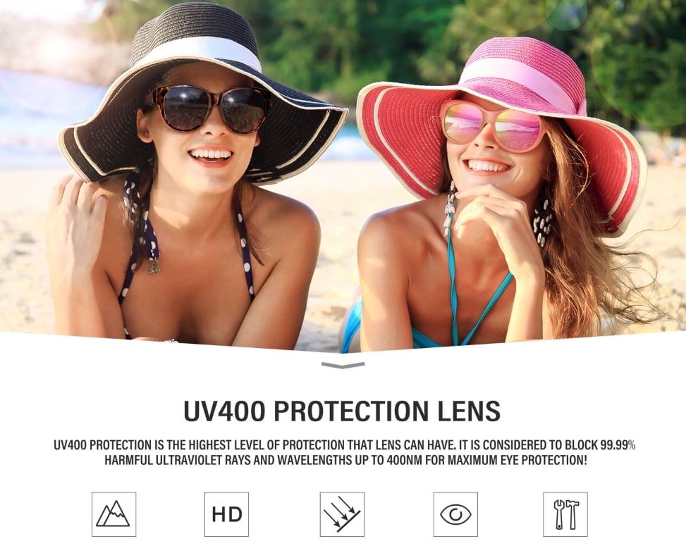 Anti-reflective mirrored lenses are specially added with polarized coating and provide UV400 protection, reduce glare reflected from roads, bodies of water, snow and other horizontal surfaces, relieve the discomfort of bright light on eyes