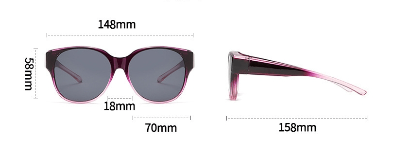 These polarized sunglasses are specially designed for those who wear prescription glasses, large frame and wide temples can well wrap your existing prescription glasses, people who wear contact lenses or with normal vision can also wear them alone