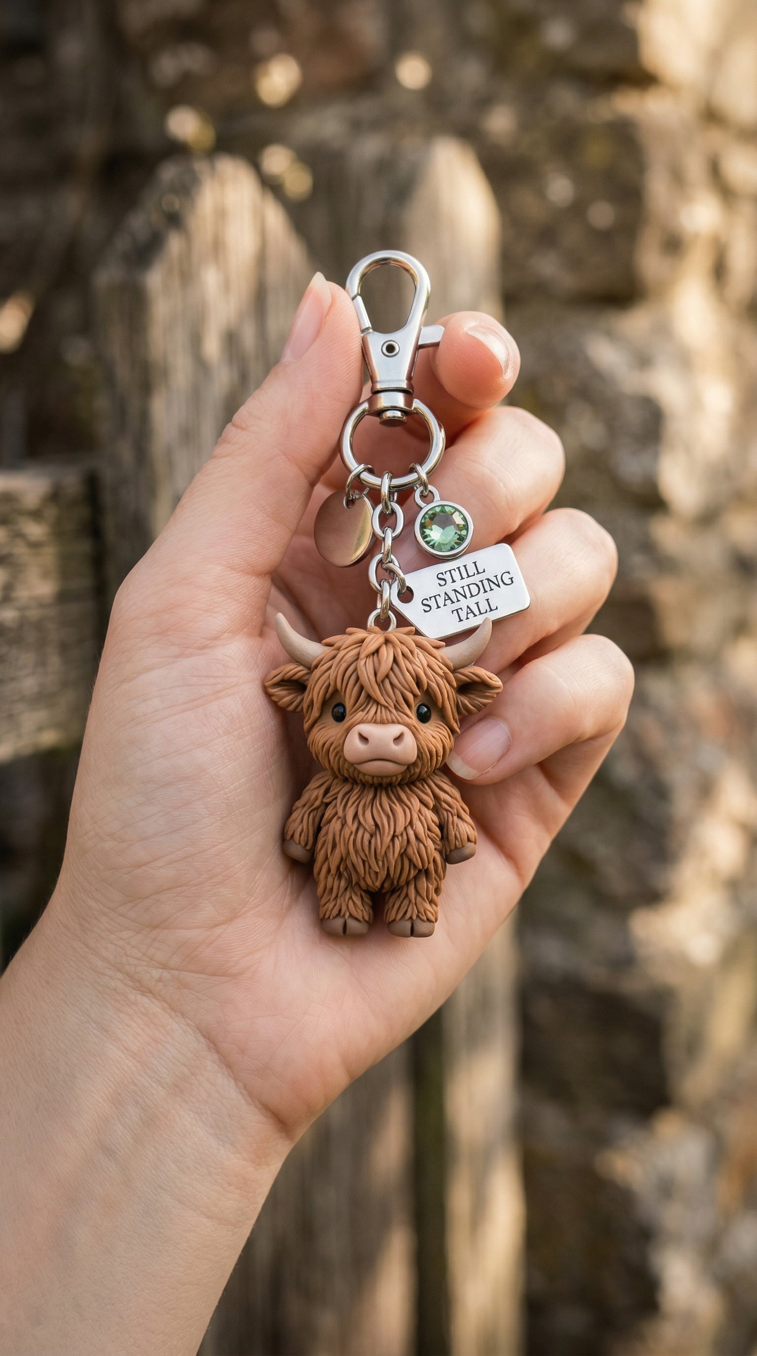 - Included: 1 x Highland Cow Keychain + 1 x Full-Color Sentiment Card (ready for gifting!)