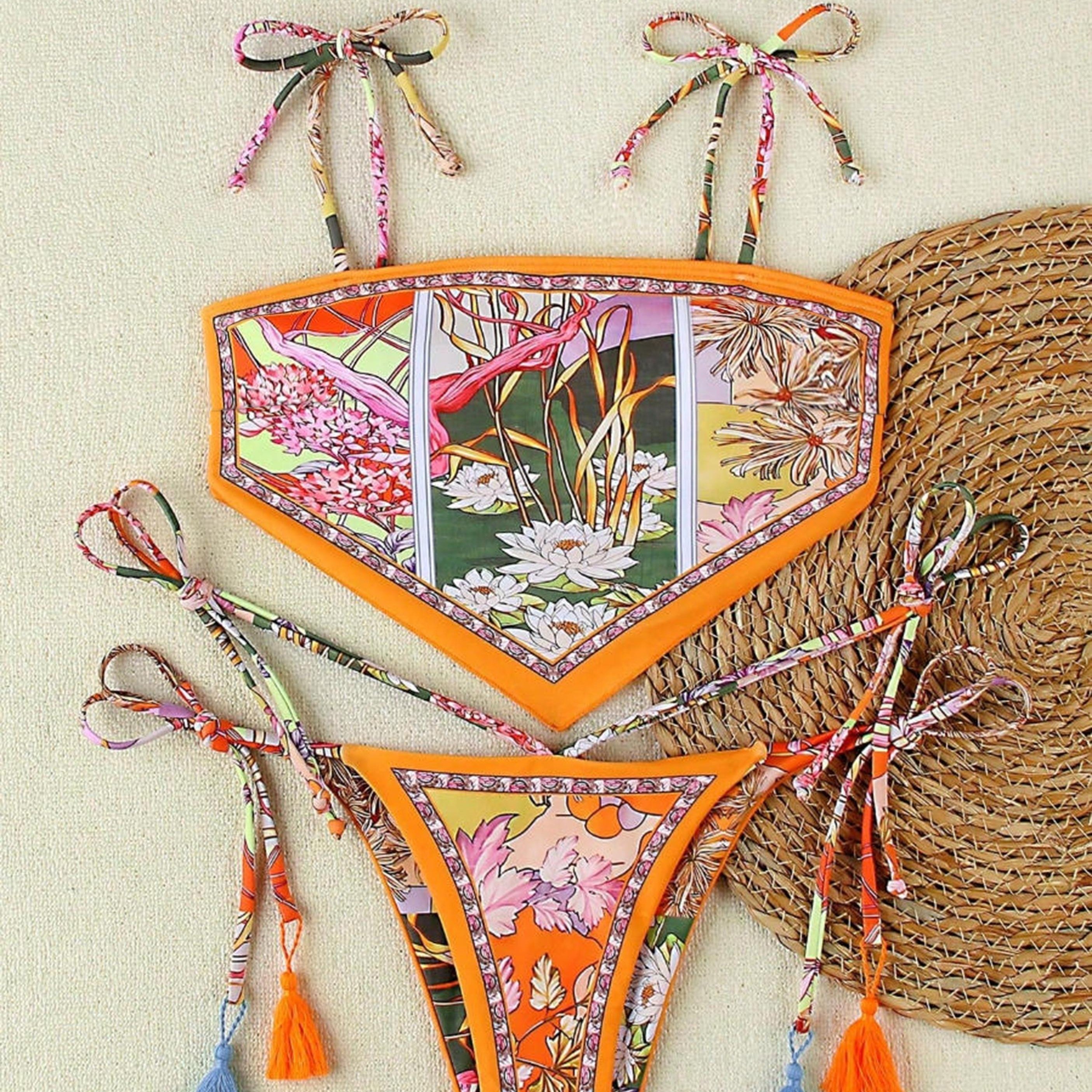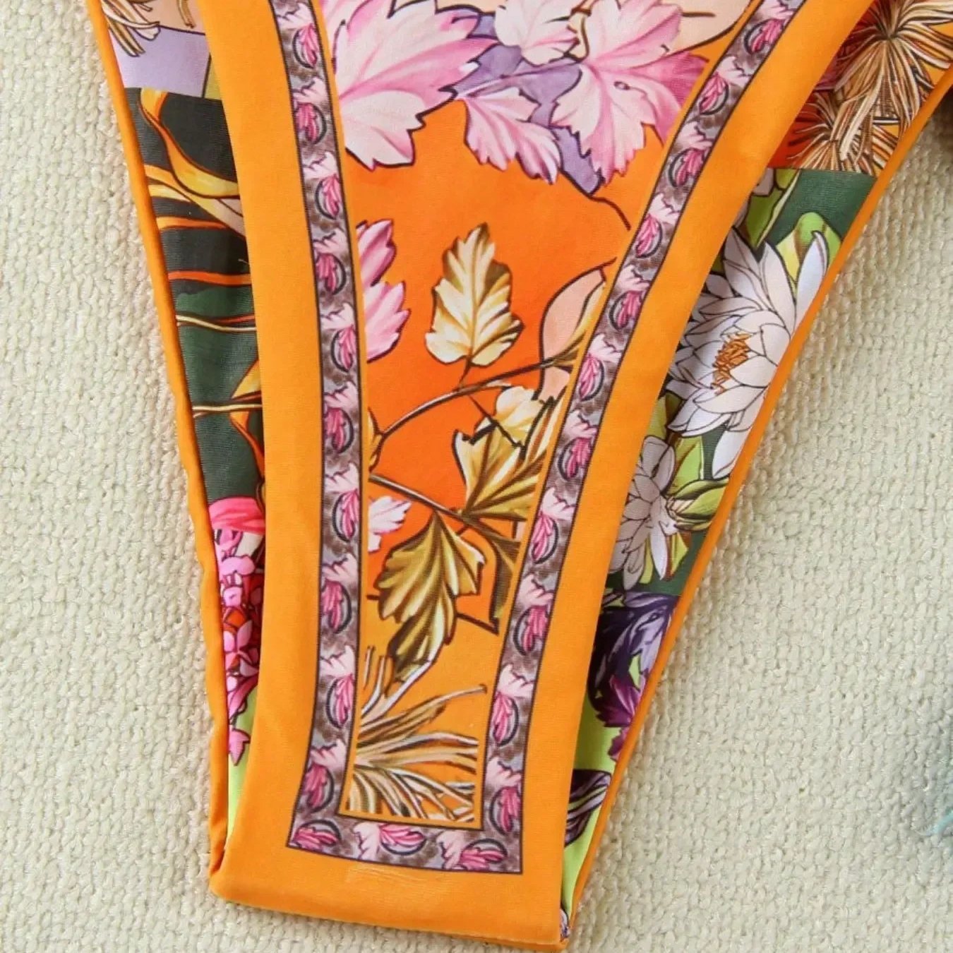 Step into summer with this stunning boho bikini—featuring vibrant floral prints + bold color-block trim for that effortlessly chic vacation vibe ✨