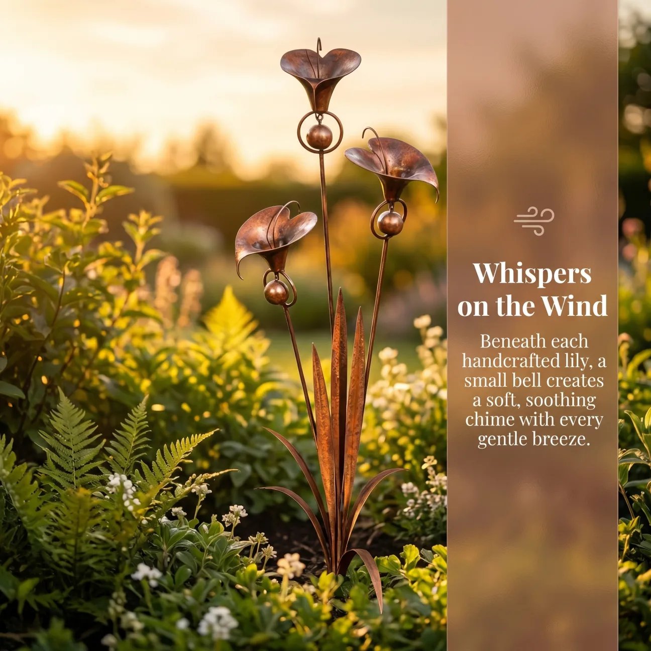 ✅ Soft Bells for Gentle Garden Sound: A small bell hangs below each lily bloom, creating a light, calming sound in the breeze for an extra touch of movement and peaceful garden charm.