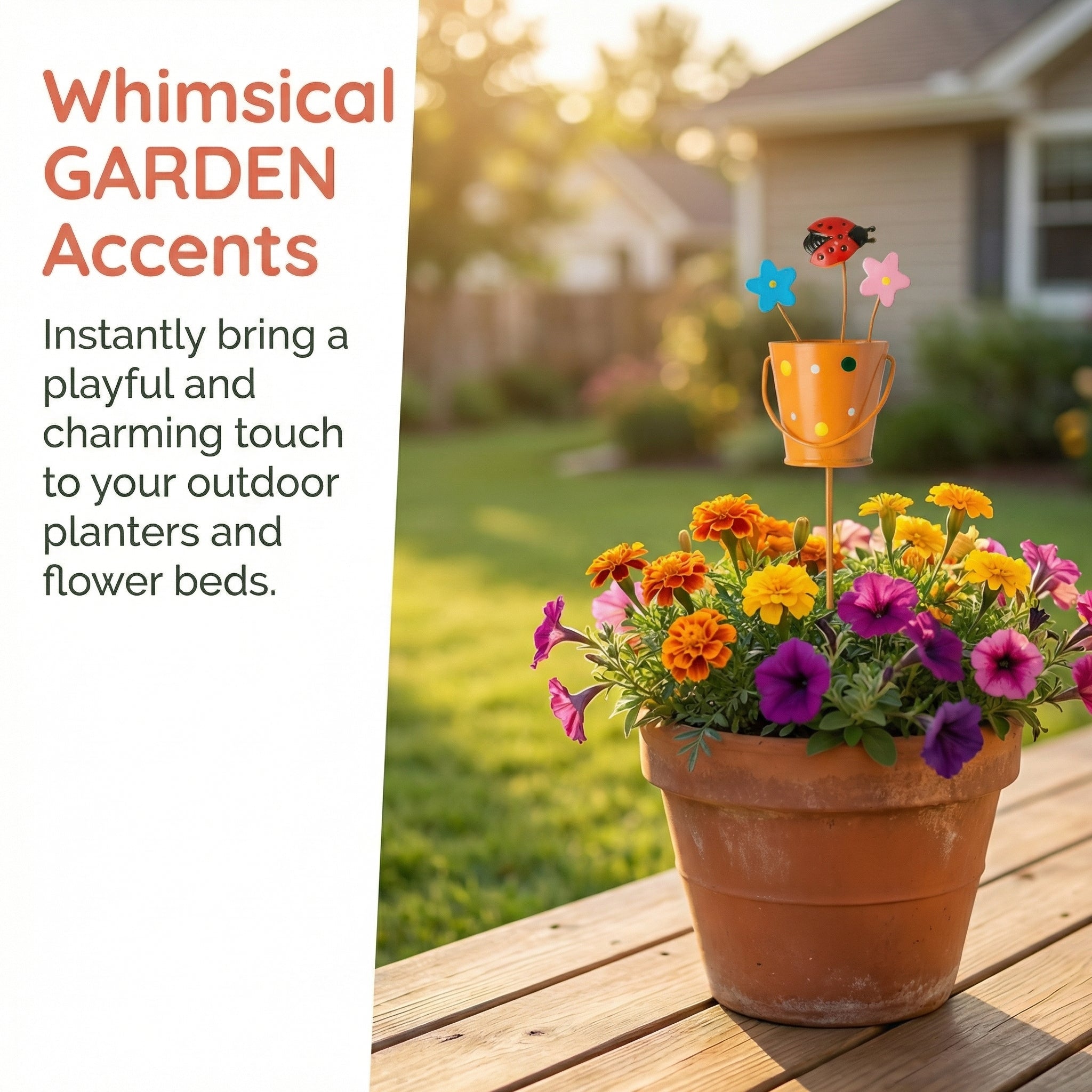 Each stake blends cute cartoon animal accents, bright hand-painted colors, and whimsical floral details—instantly making flower pots, flower beds, lawns, and patios feel more lively and welcoming.
