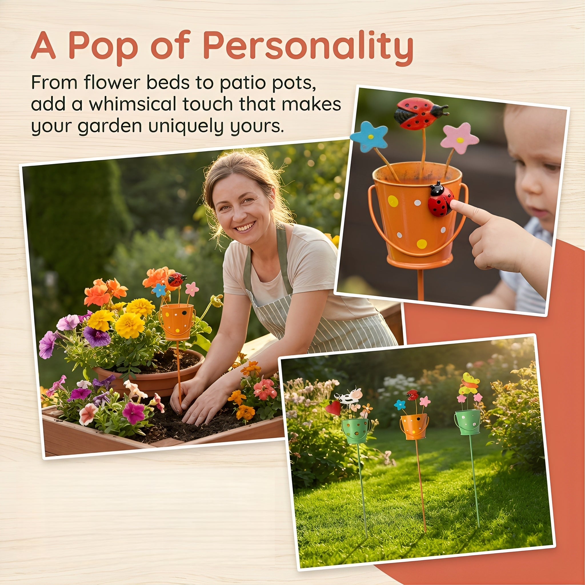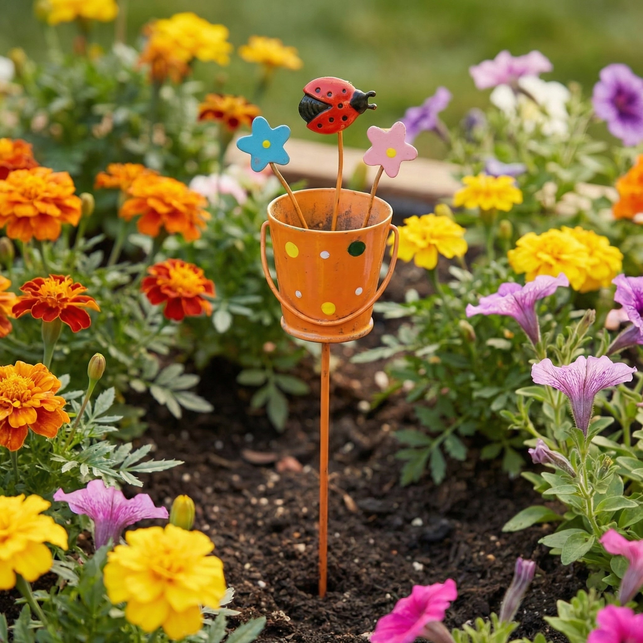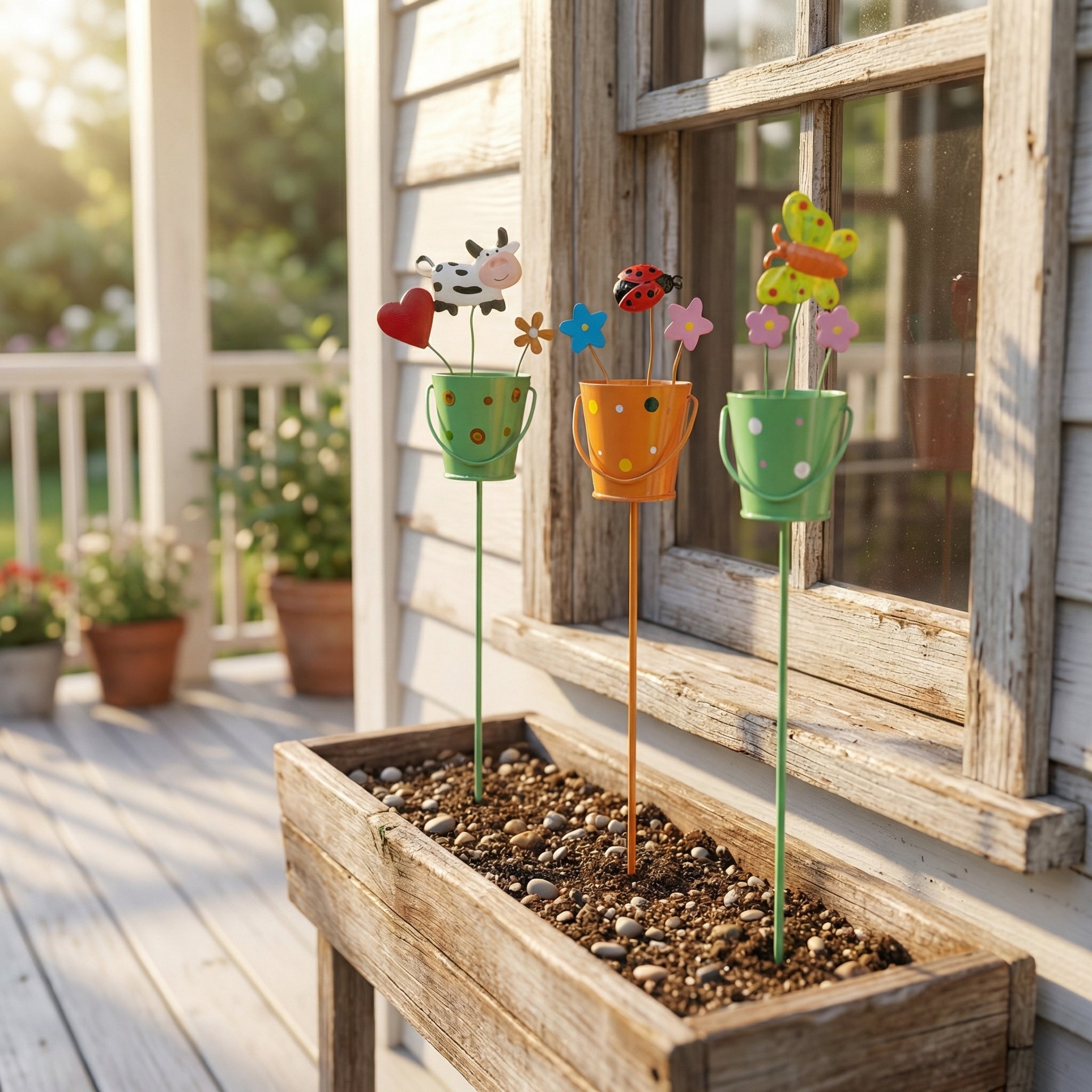 Your garden is more than just plants—it's an extension of your personality. Let this set of 3 metal flower pot garden stakes bring more smiles and color to your gardening life.