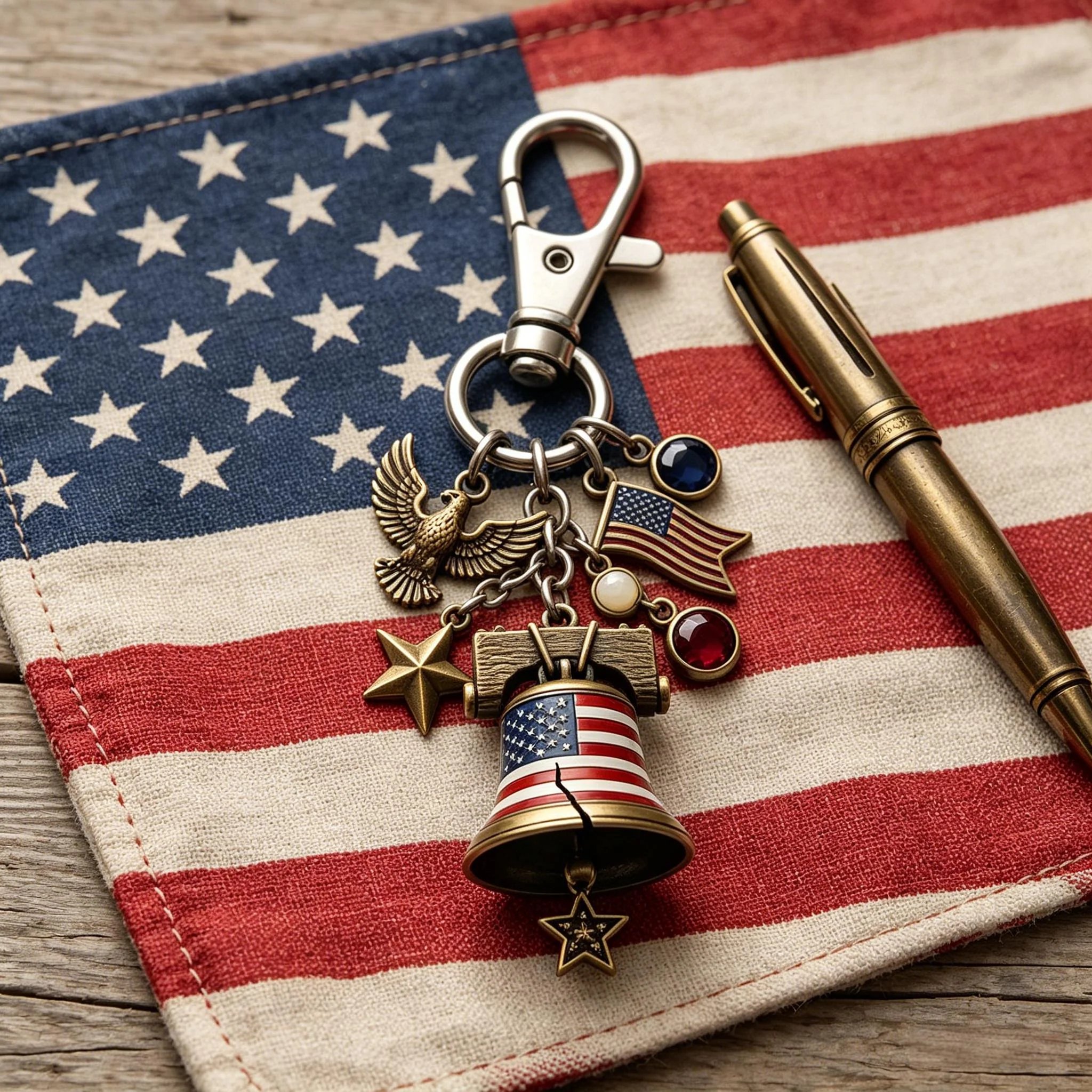 A multi-charm keychain loaded with iconic American symbols, built to last a lifetime.