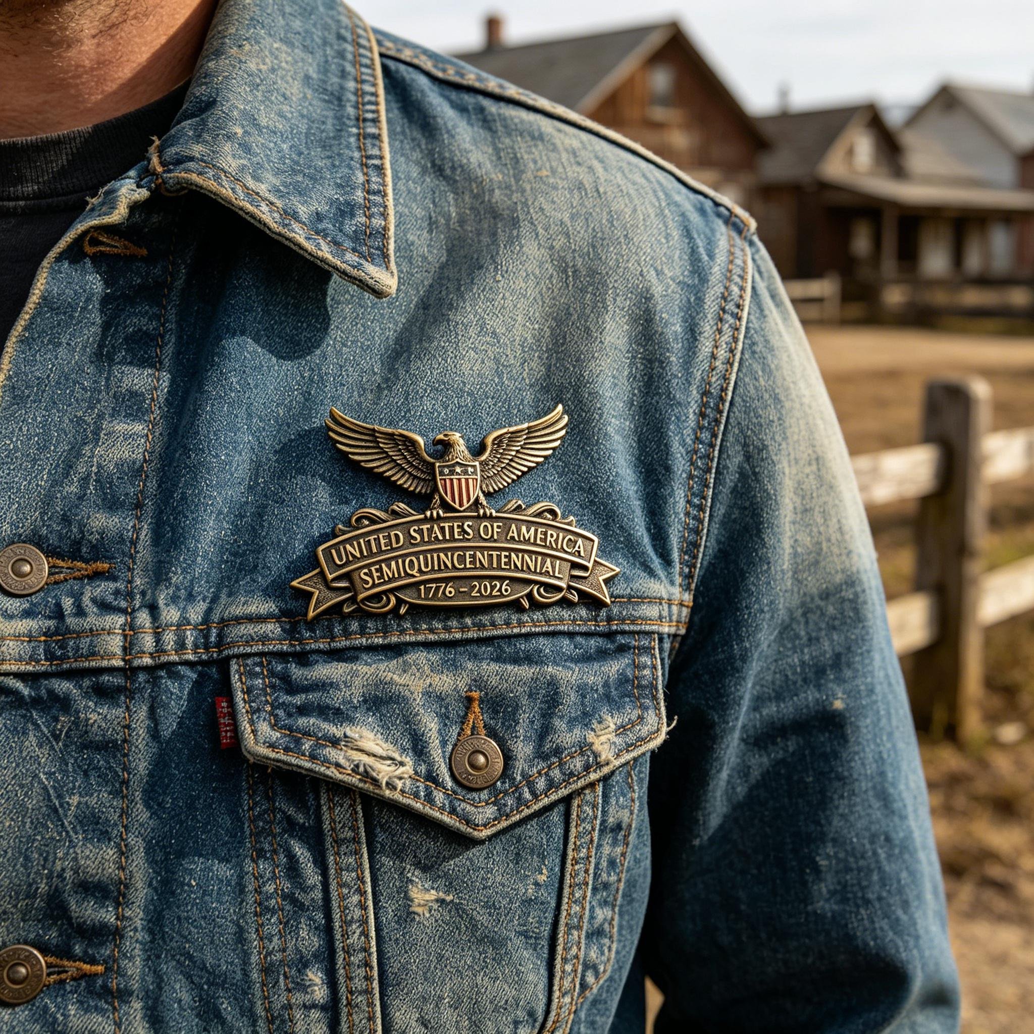 A premium, thick-stock art card printed with our original, heartfelt Semiquincentennial poem, framed with vintage American iconography (eagles, laurel, stars) for a timeless, collectible keepsake. - 🦅Vintage Eagle Semiquincentennial Lapel Pin